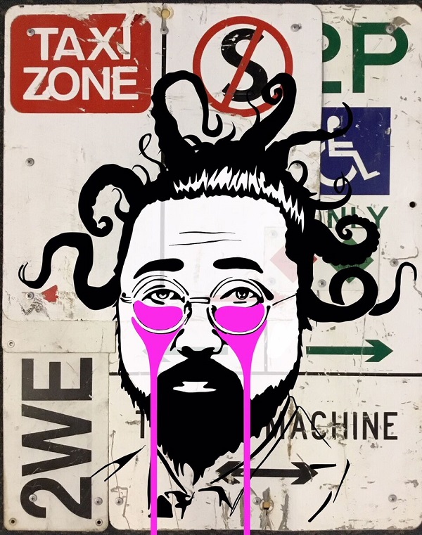 Titled ‘Marks the Spot’ Chris has this to say about the artwork: ‘The cross is a sacred symbol that vibrates with mystery and wisdom. It’s about time and space and the mechanics of reality and the crystals bring light into the metaphysical mix.’