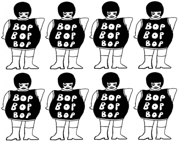 Rudy and Tamsin: Our aesthetic approach has always been rooted in DIY zine culture and that is still our biggest visual influence. Our best friend Bill Savage has been making posters, banners etc for the Bop since the second party we hosted in 2002, and our decorations are still hand-made by Bill using their work photocopier, scissors and Pritt Stick. We are also lucky to have Alex Creep (Sister Ectoplasma Distro) in our crew who is the 3rd member of the Bop DJ team and is also an incredible artist. Alex draws and doodles things and then computerises them using some wizardry or other to create our website and other Bop graphics.