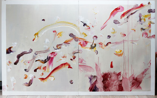 My writing is very sporadic and tends to be in the gaps between paintings- whenever I feel a visual void words are my safety net- I just really love playing with words and running with streams of consciousness. Creatively, I write poetry that borrows a lot from Imagism- last summer I went through a period that I guess is analogous to synaesthesia- every single object and experience spoke to me and I spent days and days putting it into words. I write poetry rather than keeping a diary.