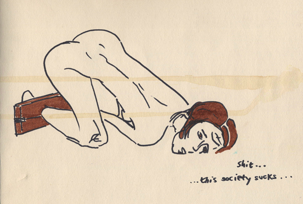 (Above: Society Sucks by Zoe Catherine Kendall, pen on paper, 2011, artist’s own blog)
