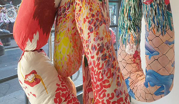 The Smallest Gallery in Soho becomes the site of a strange display of meat: artist Sophie Teh’s textile work, Objects of Desire. Teh is an artist whose work references her Malaysian Chinese background in unexpected ways, and this piece tells the story of longing, sex and consumption. Teh’s sausage-like forms hang from hooks in the window of the gallery, slowly rotating, inviting our gaze and questioning the social conditioning behind our hunger. Run Riot spoke to her about the sizzling work and the inspiration behind it.