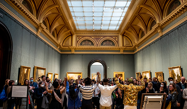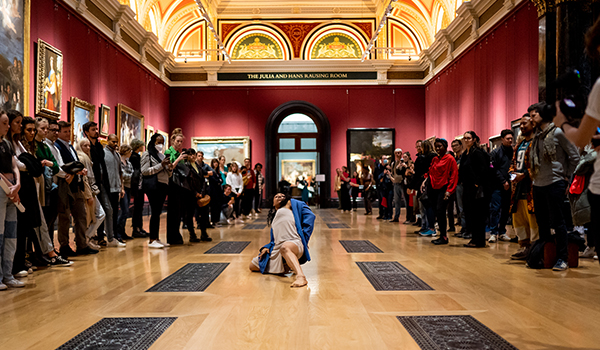 For the performance, I wanted to bring in different voices and, in particular, the Black experience to the National Gallery. Therefore, I was delighted to work with Solomon O.B. and Kieron Rennie to commission new poetry from them and also dance artists Paris Crossley and Krystal S. Lowe. All four artists have a rich history of cross-arts collaboration, so this was another opportunity to show that Black art has no bounds. Nor can or will it be pigeonholed to certain spaces or limited to certain forms.