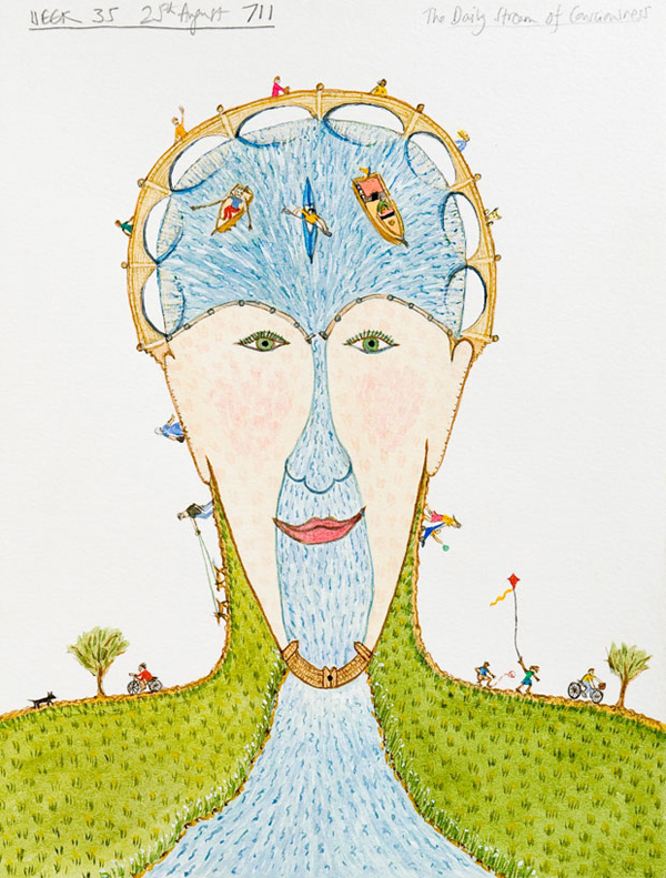 And if all this isn’t enough – between 1997 and 2008, Bobby suffered an acute mental breakdown whilst battling breast cancer. This experience she privately documented into a series of 700 daily watercolour paintings, which premiered at the Wellcome Collection in 2009, and later became a major touring exhibition, ‘Diary Drawings: Mental Illness and Me’. The accompanying book of the same name was Mind Book of the Year 2011.