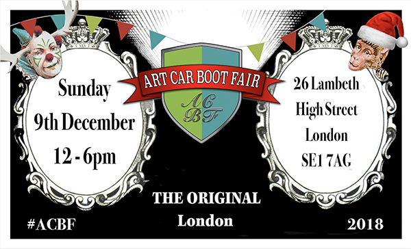 Founder of Art Car Boot Fair, Karen Ashton comments. “The Christmas edition of the Art Car Boot Fair will be a seasonal fair like no other where visitors can buy, barter for and win an incredible array of original art works and wares in an exuberant atmosphere of frivolity and fun.”