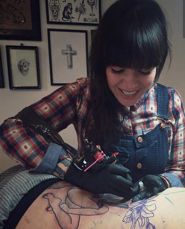In her own words: “I worked full-time at the shop for free and bartended at night to pay the bills. I think most people that learned to tattoo in the “old school” apprenticeship way will say the same; being constantly built up and torn down is a roller coaster emotionally, but it serves its purpose. It keeps you humble and willing to learn.”