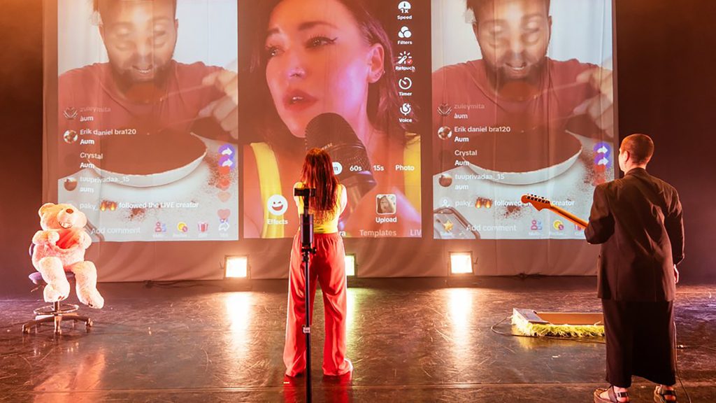 For a show about whether any of this was worth it, what happened next was unexpected. We’ve now been touring globally for 2 years – over 100 shows, including New York, Mexico, Malta, Denmark (plus more international dates to come). Along the way we’ve picked up awards, some mad press (hello New York Times), and even a little TikTok fan club who now come back nightly to watch some weird messy performance art unfold on the phones in the palms of their hands. And, of course, I’ve also been trolled to hell – by neonazis, Danish schoolkids, and even a right-wing Upper East Side teenager, who couldn’t bear the fact that I was suggesting TikTok might be bad, or the fact that I was putting my ‘gross, weird’ performance art on it (how Regina George of her), published by a major right wing outlet. The show itself, though, is something else- it’s chaotic and beautiful and live and strange, and if you’ve ever stood in a room full of people all looking at their phones and felt simultaneously connected and completely alone, it will feel uncomfortably familiar. And in all the darkness of it, it’s proven to me that people do still want to come back, to feel connected, and that, almost unbelievably, there still might be an audience for performance art.
