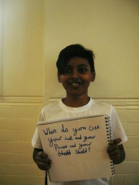 ME: One of my favourite questions was “Can you tell me how I can become like a power ranger?” and this got unexpectedly earnest responses about use and abuse of power, leadership and social responsibility. Likewise, “Where did you get your suit and your powers and your shield?” was interpreted literally (“TM Lewin”), metaphorically (“My shield is my dignity”) and with a sense of humour (“My powers are the power of the imagination and fart management”).